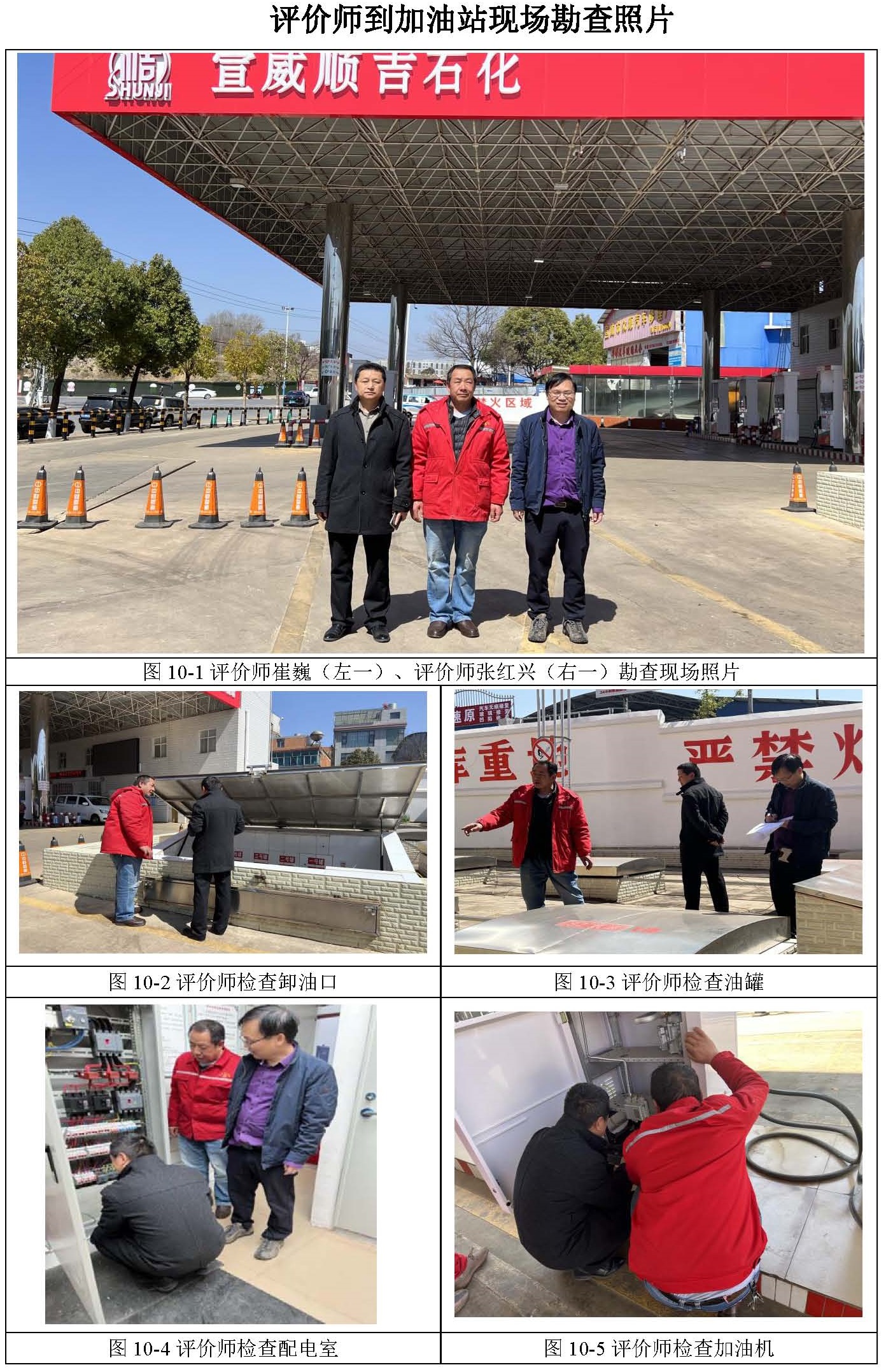 評價結(jié)論為:宣威市順吉石化有限公司城郊加油站已完成本次評價發(fā)現(xiàn)的不符合項整改,站址選擇及平面布置、加油工藝及設(shè)施、消防設(shè)施、電氣及報警系統(tǒng)、建(構(gòu))筑物等方面符合《汽車加油加氣加氫站技術(shù)標(biāo)準(zhǔn)》(GB50156-2021)標(biāo)準(zhǔn)規(guī)定;經(jīng)營場所、危險化學(xué)品儲存設(shè)施、人員配置及培訓(xùn)考核、安全管理制度、安全操作規(guī)程、應(yīng)急預(yù)案、應(yīng)急物資滿足《危險化學(xué)品安全管理條例》(國務(wù)院令第591號,第645號修改)第三十四條、《危險化學(xué)品經(jīng)營許可證管理辦法》(原國家安監(jiān)總局令第55號公布,第79令號修正)第六條要求,從安全的角度宣威市順吉石化有限公司城郊加油站具備危險化學(xué)品經(jīng)營的安全條件。 | ||||||||