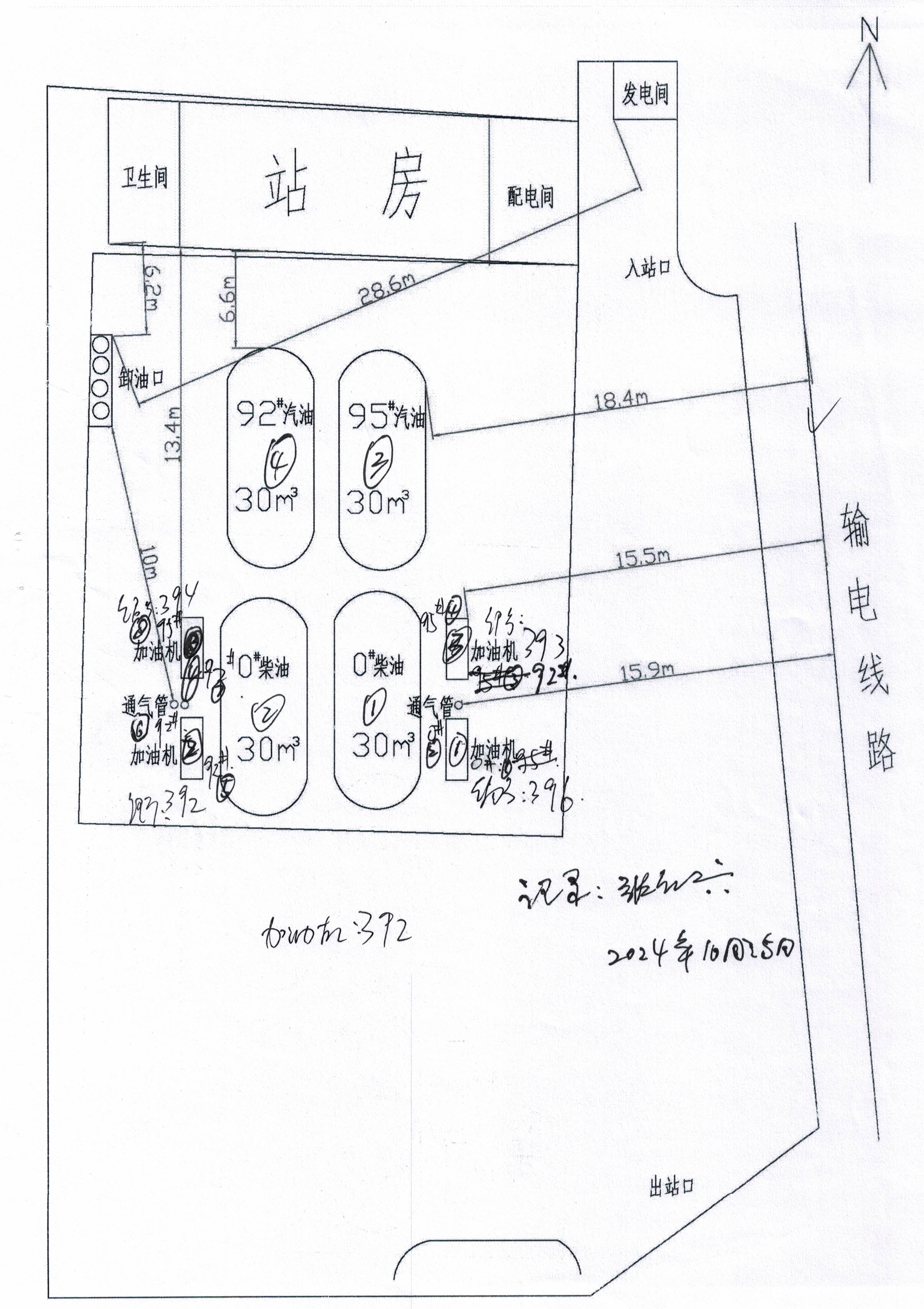 現場勘查情況 | 無人機航拍加油站及周邊平面照片,查看加油站周邊環境,查看加油區、油罐區、液位計、配電室現場情況,查看安全管理資料。 | |||||||
