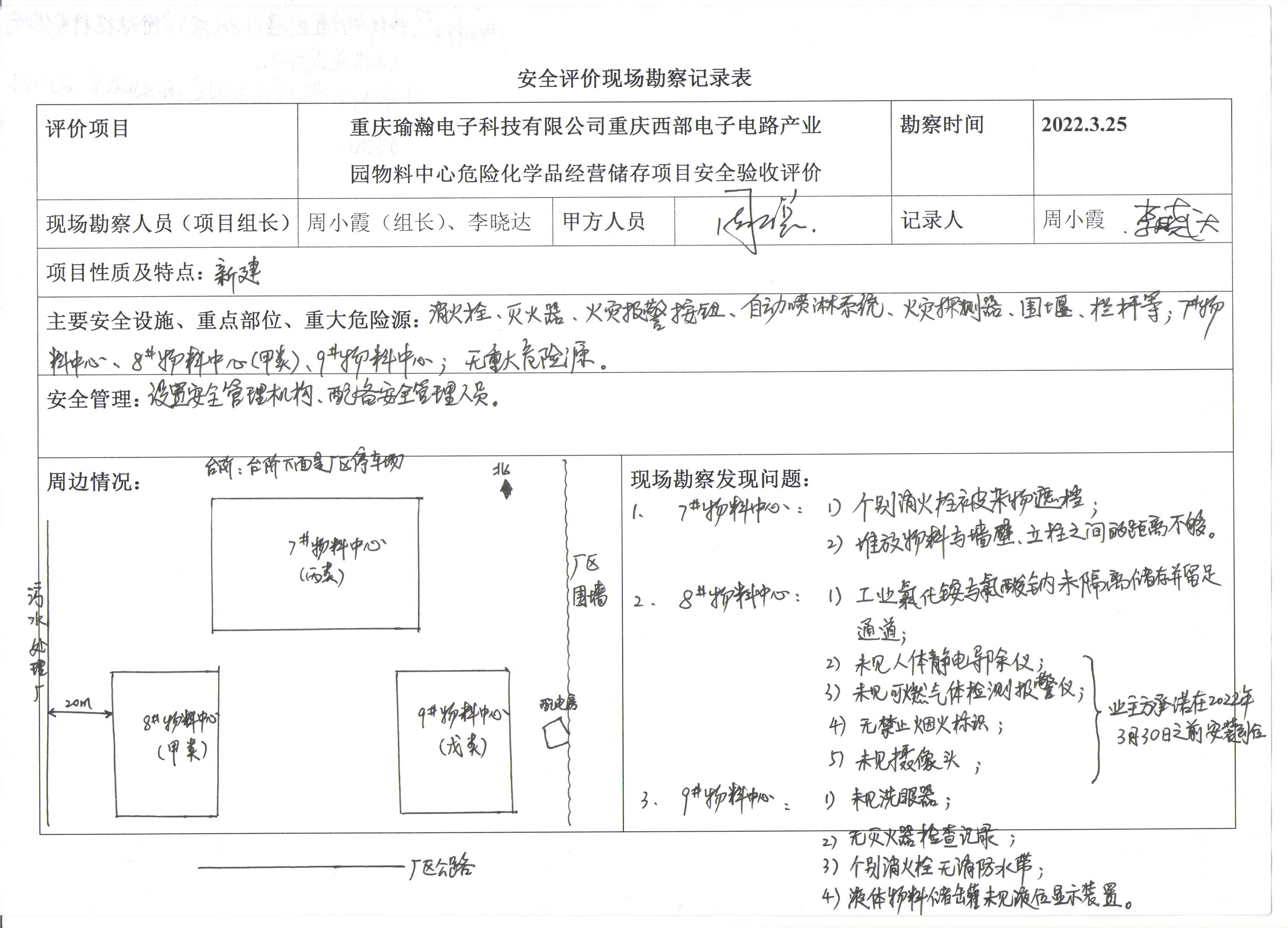 項(xiàng)目名稱 | 重慶瑜瀚電子科技有限公司物料中心危險(xiǎn)化學(xué)品經(jīng)營儲存項(xiàng)目 安全驗(yàn)收評價(jià) | 合同編號 | DA-(渝)JP-2022001 | |||||