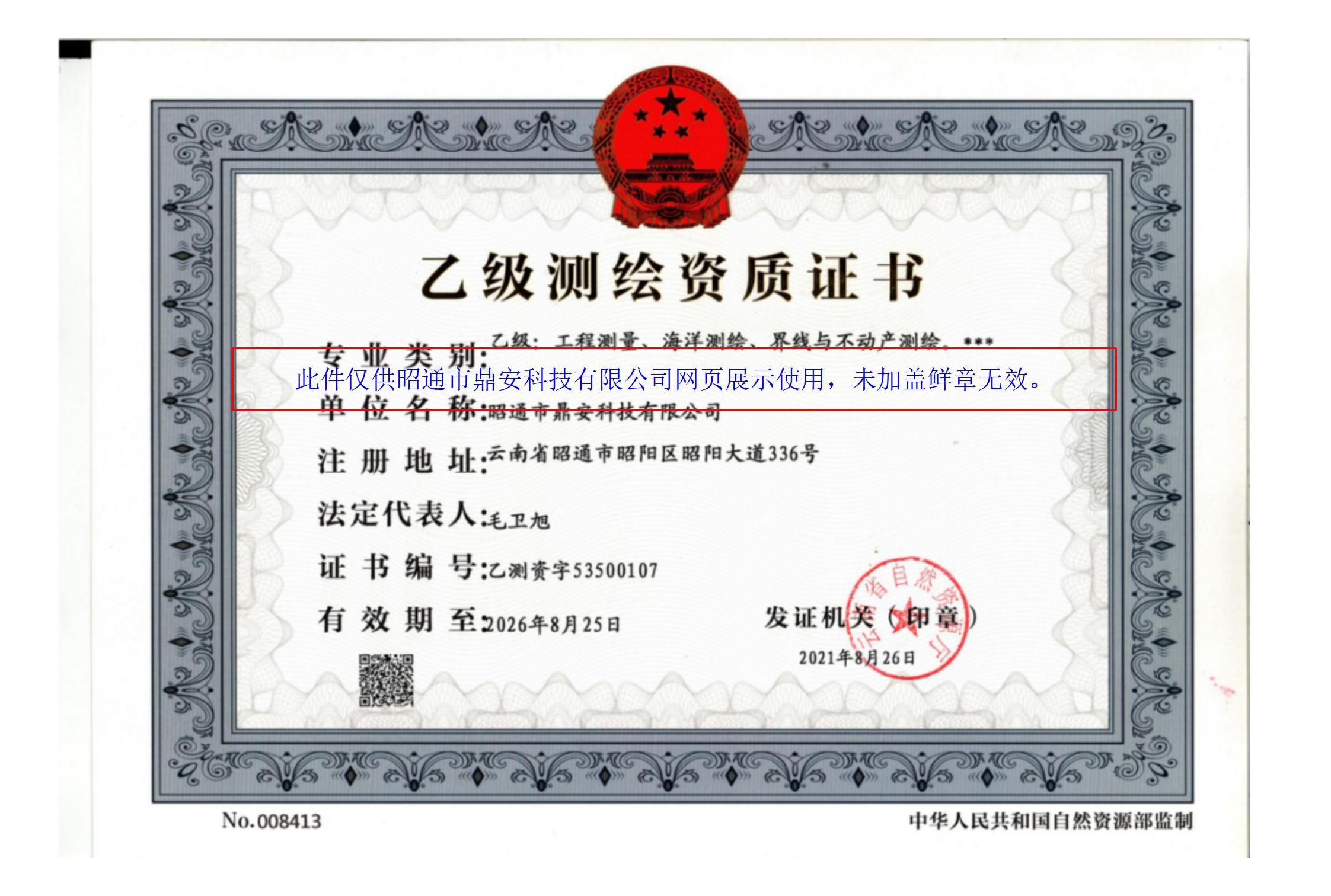 昭通市鼎安科技有限公司測繪資質